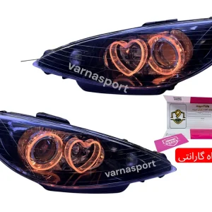 چراغ جلو اسپرت پژو طرح تک قلب با دو حلقه فولکالر تنظیم با گوشی مناسب برای 206 بسته دو عددی